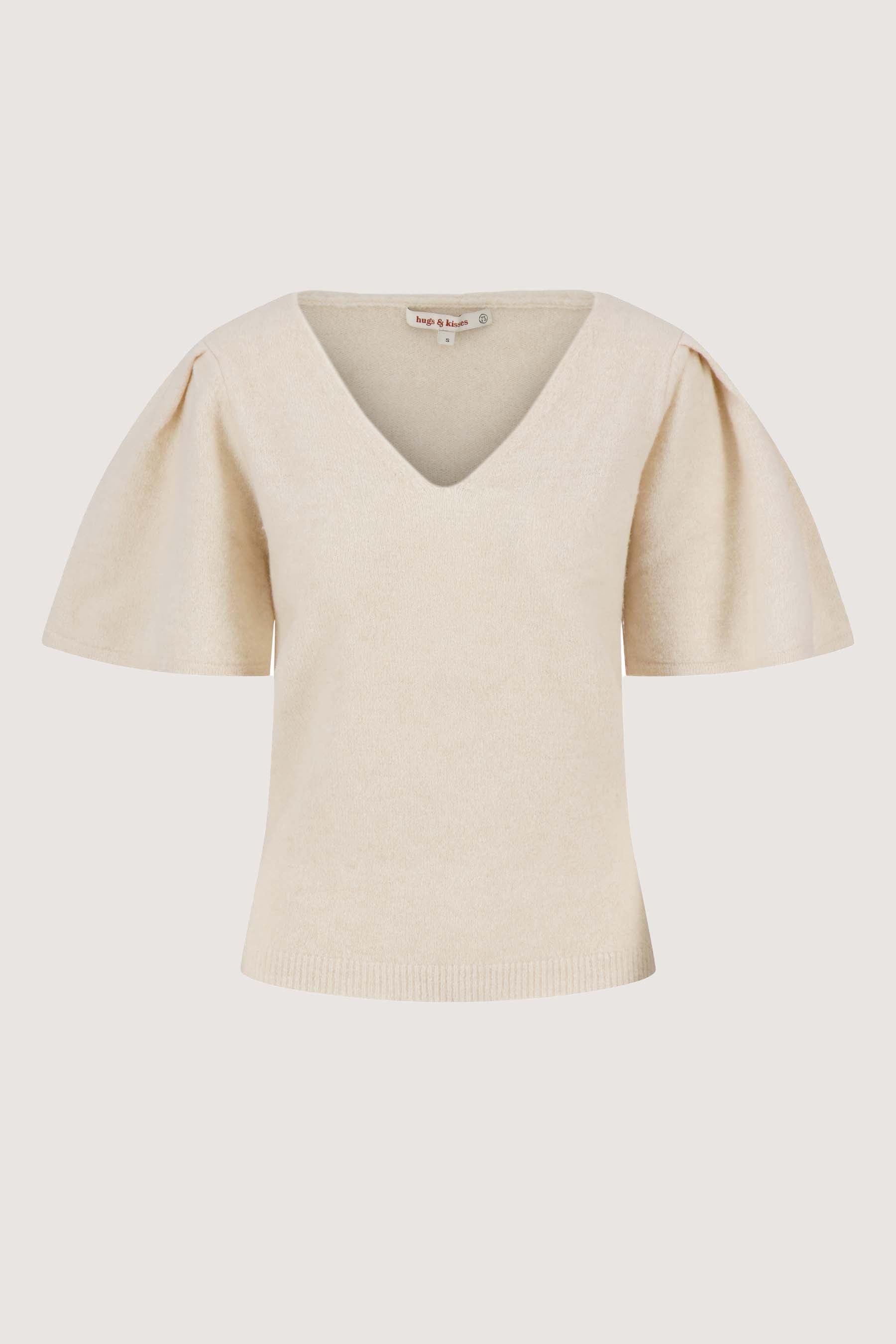Dieses Zusss Damenoberteil mit Schmetterlingsärmeln ist eine stilvolle Ergänzung Ihrer Garderobe. Der flauschige Stoff sorgt für ein weiches, angenehmes Tragegefühl. Durch die cremefarbene Farbe lässt sich dieses Oberteil leicht mit verschiedenen Outfits kombinieren. Der V-Ausschnitt verleiht ihm eine elegante Note, während die voluminösen Schmetterlingsärmel dem Oberteil einen einzigartigen Look verleihen. Durch die feine Struktur des flauschigen Stoffes fühlt sich dieses Zusss-Oberteil wunderbar leicht und warm an. Kombinieren Sie das Oberteil mit einer unserer Hosen, um das Outfit zu vervollständigen.