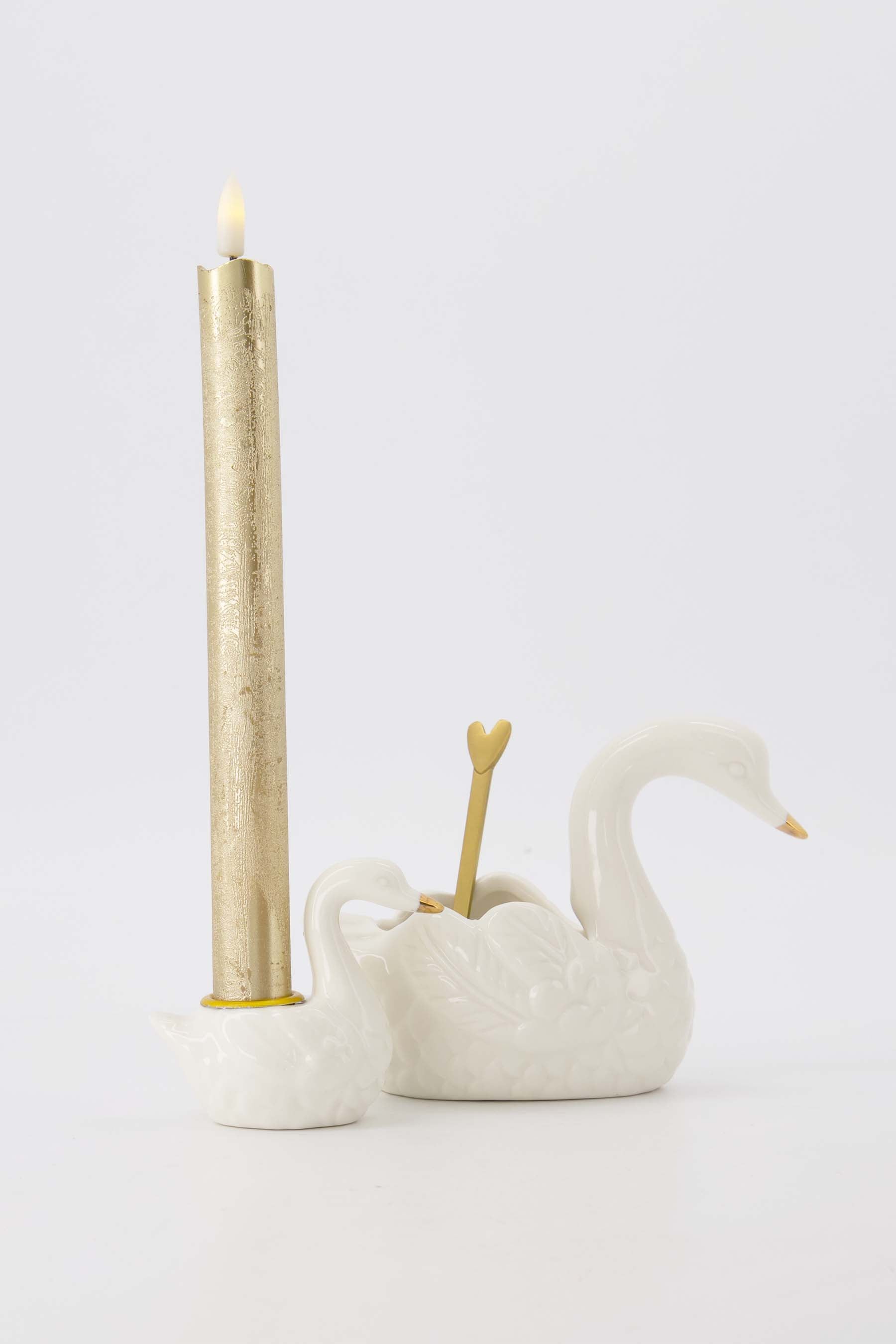 Zusss Keramik Teelichthalter Schwan weiß gold