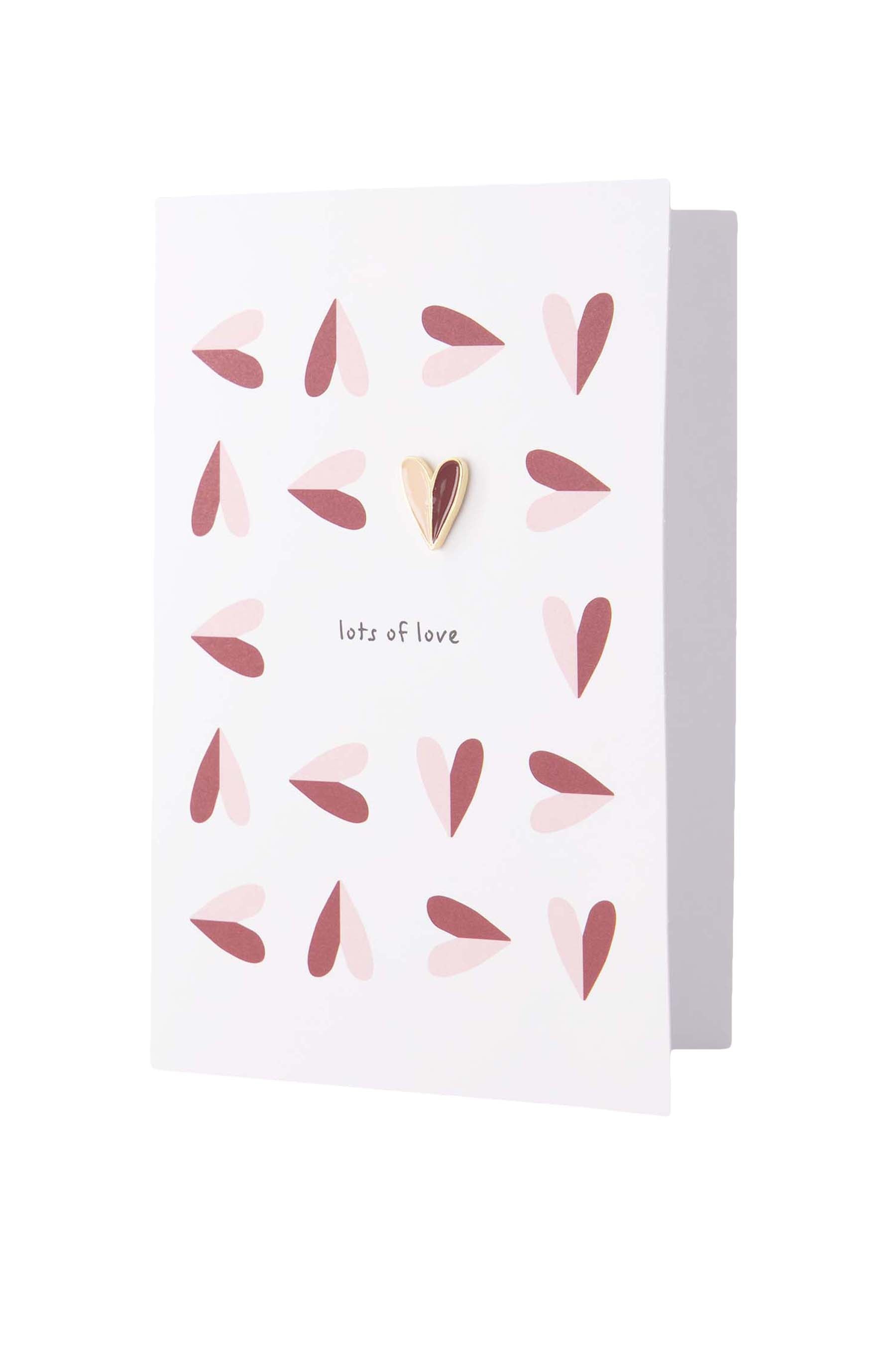 Deze Zusss wenskaart met broche is perfect om jouw liefde te laten zien. De wenskaart heeft een lief patroon met roze en rode hartjes, en... Lees meer