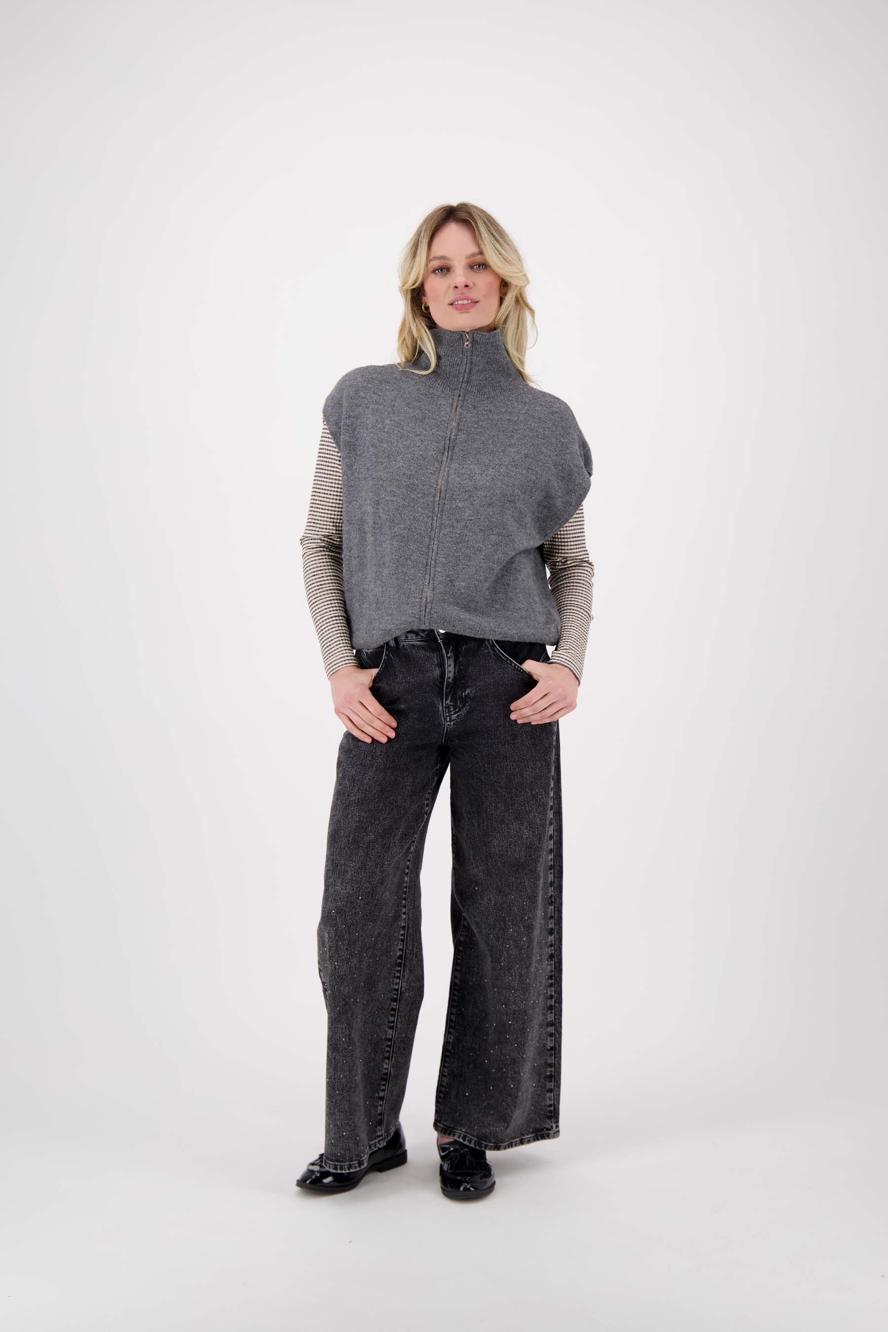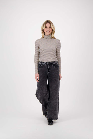 Der weite Denim von Zusss mit Glitzer ist eine schöne Ergänzung für Ihre Garderobe. Diese Hose hat eine bequeme, lockere Passform und eine graue Farbe, die leicht zu kombinieren ist. Die dezenten Glitzer-Akzente geben das gewisse Extra, ohne übertrieben zu wirken. Egal, ob Sie etwas Lässiges oder etwas Auffälligeres wollen, diese weite Jeans mit Glitzer lässt sich mühelos anpassen. In dieser ungewöhnlichen, aber ruhigen Hose werden Sie sich wohl und sicher fühlen.