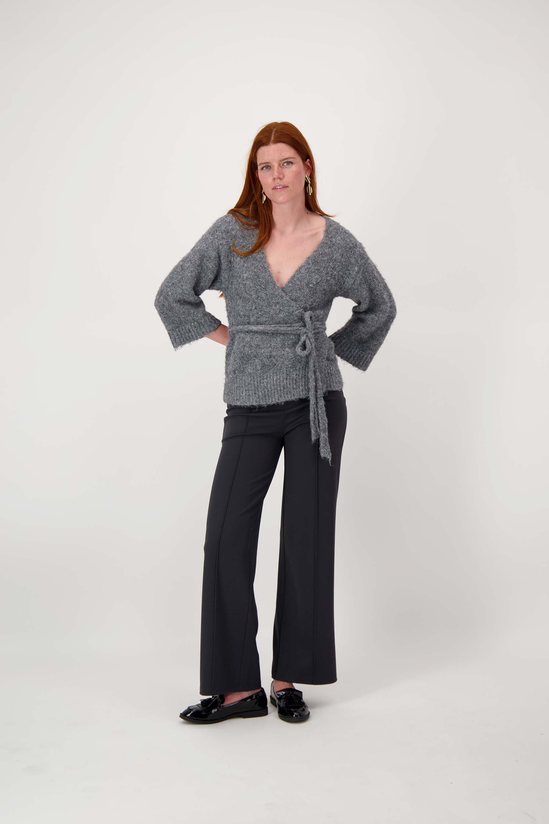 Die Wickelstrickjacke von Zusss ist eine schöne Ergänzung für Ihre Garderobe. Diese Wickeljacke kombiniert Komfort mit einem subtilen, coolen Look. Die mittelgraue Strickjacke hat eine weiche Struktur und einen verspielten Wickelgürtel, der Ihre Taille betont. Perfekt für kühlere Tage, fällt die Wickeljacke großzügig und fühlt sich wunderbar warm an. Diese Strickjacke passt zu vielen Outfits und ist ein vielseitiges Basic in unserer Strickjacken-Kollektion.